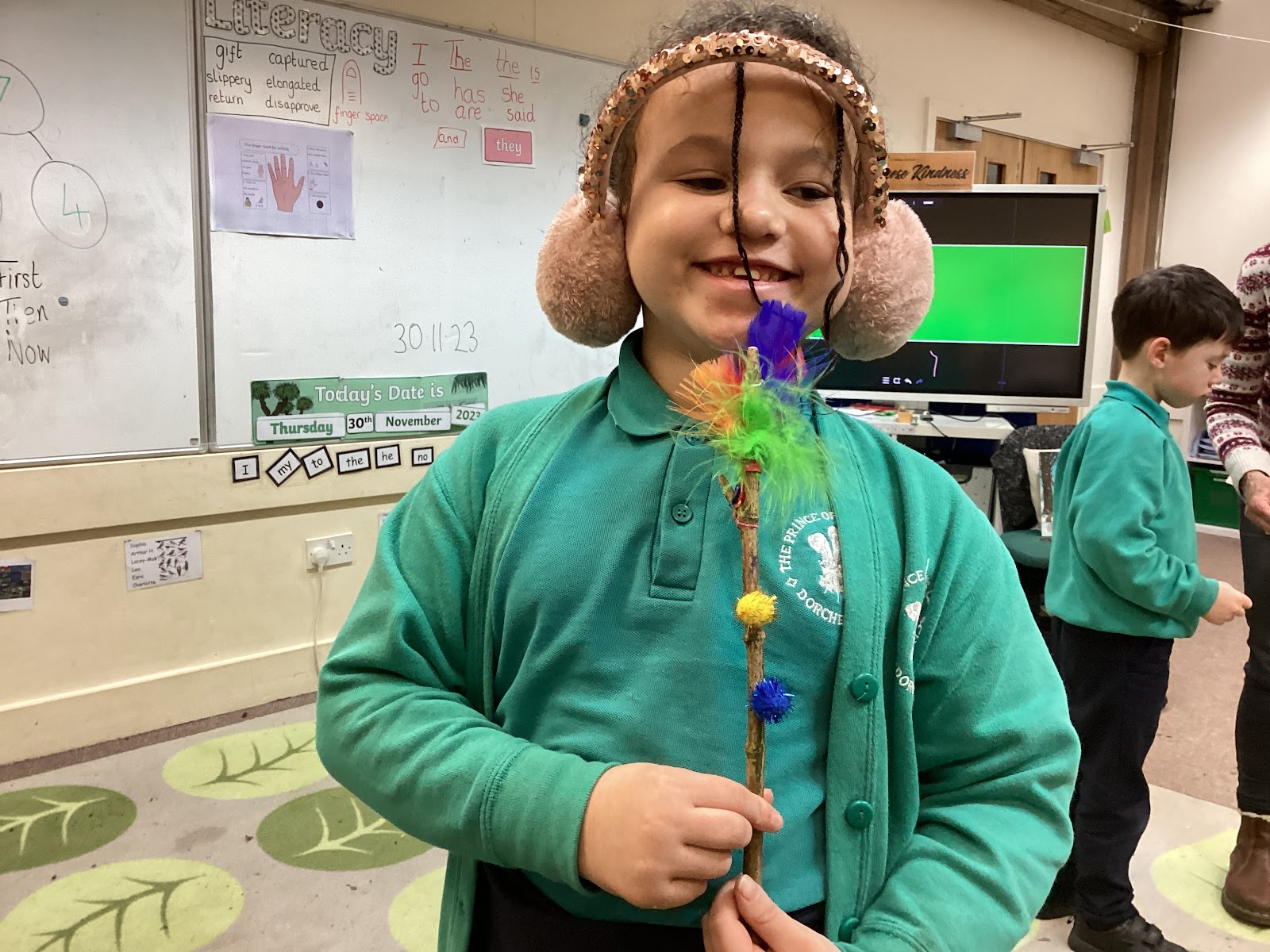 In Forest School this week we were lucky enough that the snow came just as we were going outdoors. We got to enjoy some of the snowflakes and then collected a stick and headed back in to the warmth. The children all made a very cool 'Stick Man' of their own!