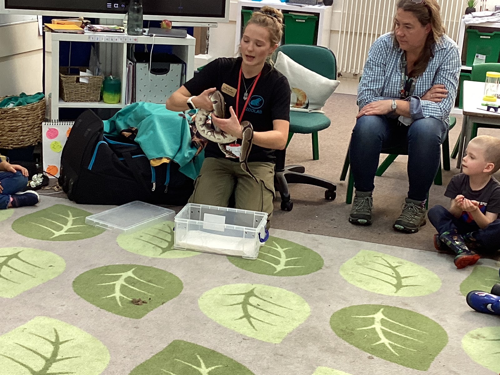 On Friday we had an amazing visit from ZooLab. Emma showed us lots of fantastic creatures, some of which we got to touch. The children were very interested in what Emma had to tell them and loved learning about the different types of animals. This formed part of our science topic this term, where we have been learning about different animal groups. If you don't like snakes don't look down!